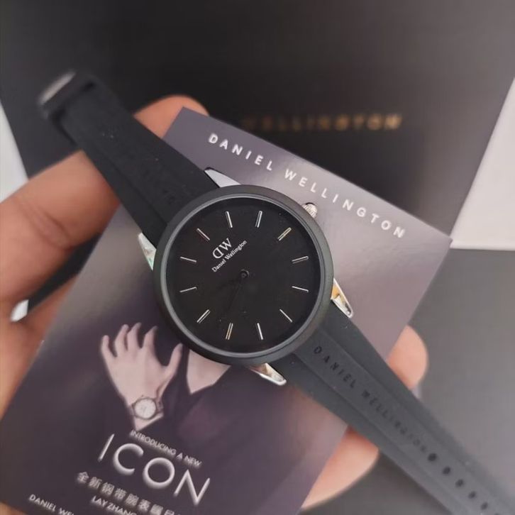 JAM TANGAN WANITA DANIEL WELLINGTON ICONIC MOTION SILVER BLACK RUBBER ORIGINAL