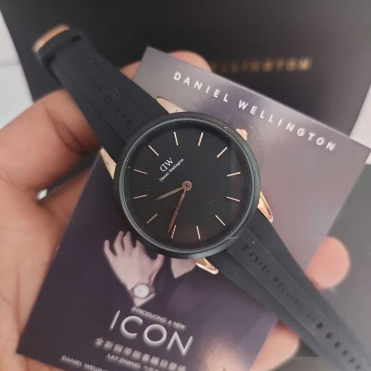 JAM TANGAN WANITA DANIEL WELLINGTON ICONIC MOTION BLACK ROSEGOLD RUBBER ORIGINAL