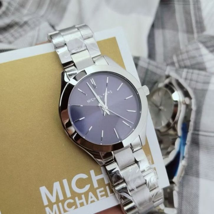JAM TANGAN WANITA MICHAEL KORS MK3379 SILVER NAVY STAINLESS STEEL FREE ONGKIR FREE BOX
