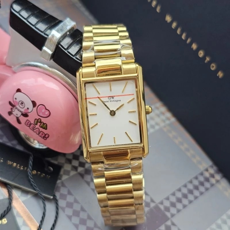JAM TANGAN WANITA DANIEL WELLINGTON DW Bound Square Steel GOLD - FREE BOX FREE ONGKIR