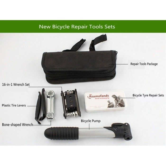 Peralatan Reparasi Sepeda Tambal Ban 16in1 Kunci Pompa Angin Tas Mini