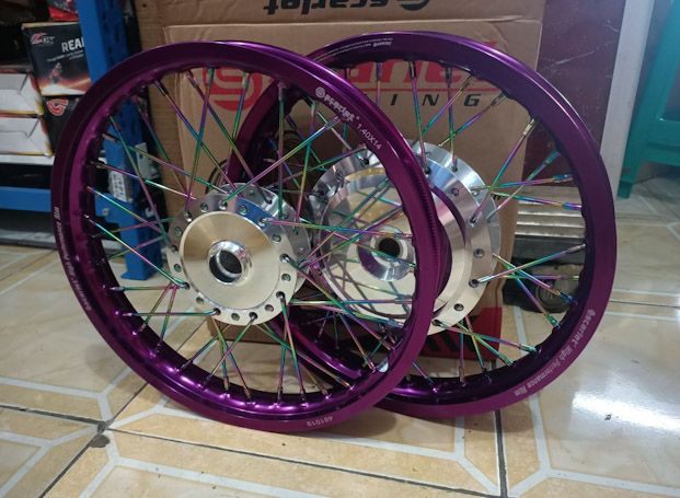 Paketan pelek jari jari Fino,Xeon,Mio Sporty, Mio M3,Mio Z,Mio J, Mio GT ring 14 warna bisa request