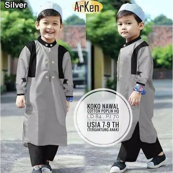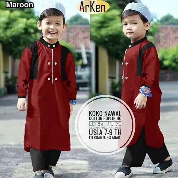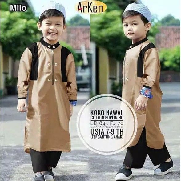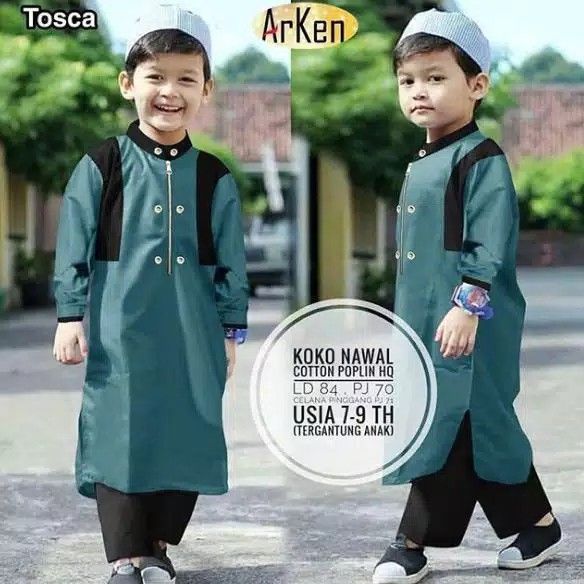 Baju Koko Anak Muslim Grosir Busana Laki Cowok Murah Islam Katun Adem Umur Usia 6-8 Tahun TK SD Q9W