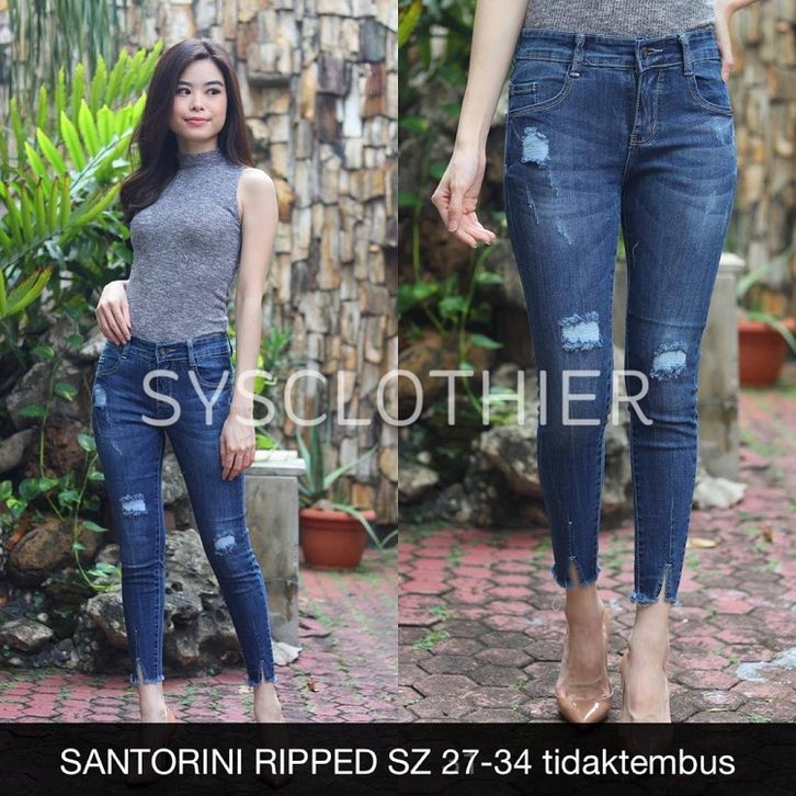 CELANA CEWEK JEANS WANITA SANTORINI RIPPED ( brand JL) / / JEANS PANJANG WANITA