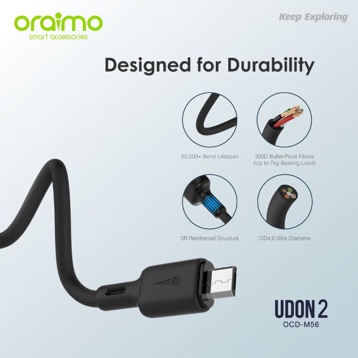 Oraimo Udon 2 Kabel Data Type-C Micro USB 2 Meter Fast Charging Multi Proctection OCD-C56 OCD-M56