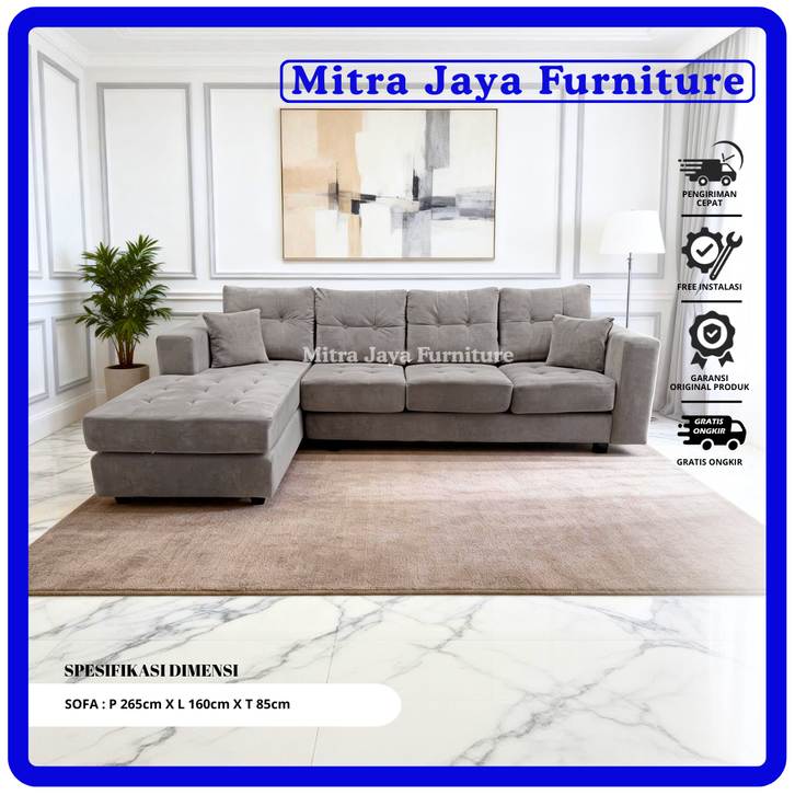 Sofa L Santai Full Seat Ruang Keluarga Bahan Velvet Lembut / Mitra Jaya Furniture
