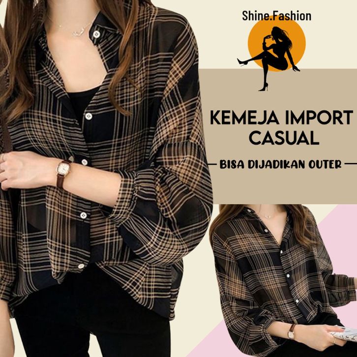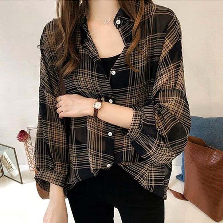Baju Wanita / Atasan Wanita / Kemeja Wanita / Kemeja Panjang Model Longgar Motif Kotak-Kotak KoreaStyle Atasan M-4XL