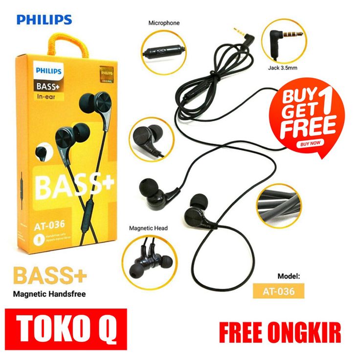 BUY 1 GET 1 HEADSET PHILIPS AT-036 BASS+ Earphone Philips Suara Mantap - FREE ONGKIR - TOKOQ
