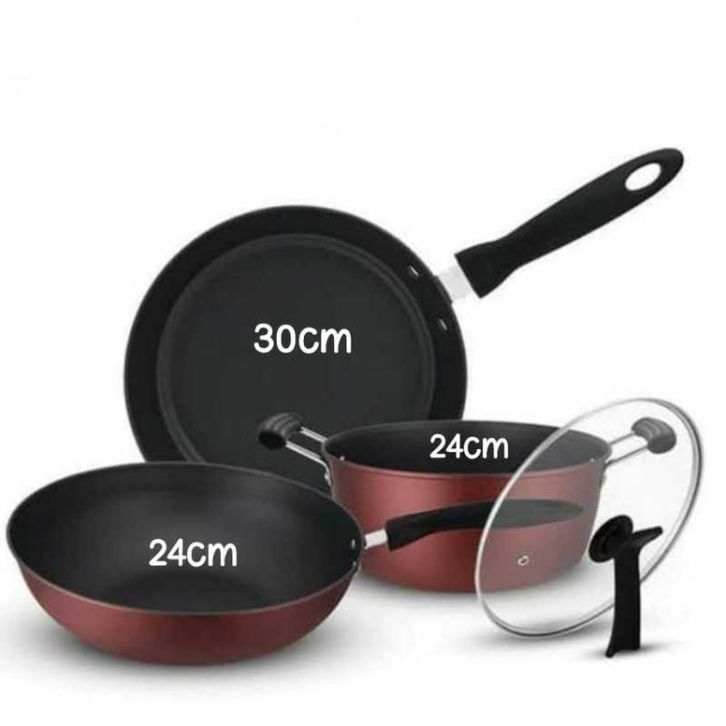 Panci set anti lengket - Panci set 3 in 1 Panci Serbaguna Wajan Anti Lengket panci sup teflon frypan tutup kaca cantik