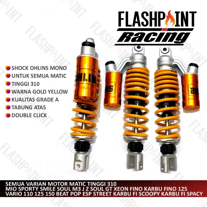 (FREE ONGKIR) SHOCKBREAKER OHLINS GOLD KUNING TABUNG ATAS CLICK MODEL YSS 310MM GENIO SPIN NEX XRID SKOK SKOP SEKOK