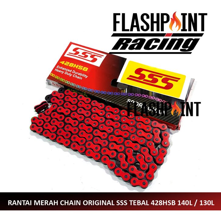(FREE ONGKIR) RANTAI MOTOR ORIGINAL SSS 428 130L 130 L 428HSB HSB TEBAL WARNA RED MERAH RANTE GRADE A CHAIN