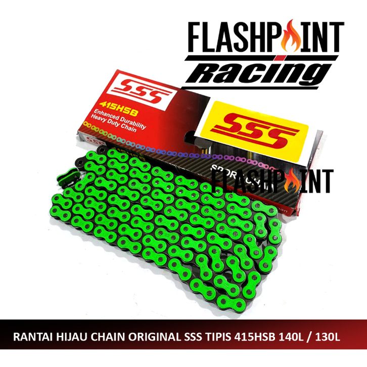 (FREE ONGKIR) RANTAI RANTE WARNA SSS MOTOR ORIGINAL SSS 415 130L TIPIS WARNA GREEN HIJAU RANTE GRADE A CHAIN