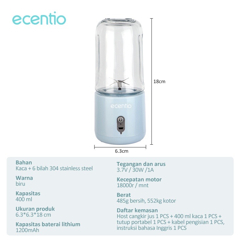 FOODI 6 Mata Pisau Portable Blender Juicer Jus Blander 400ml biru/Mini Blender USB Rechargeable/blender kapsul 400ml