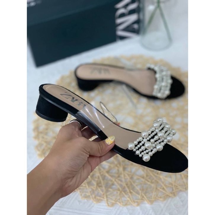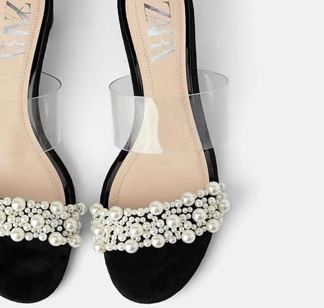 SEPATU | SHOES | WANITA | ZARA ZS37 VYNIL AND PEARL HEELED SANDAL ORI PREMIUM IMPORT