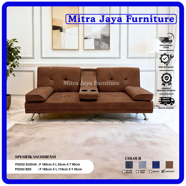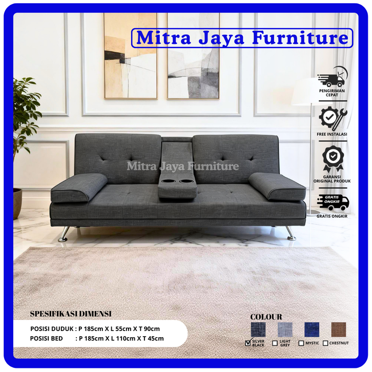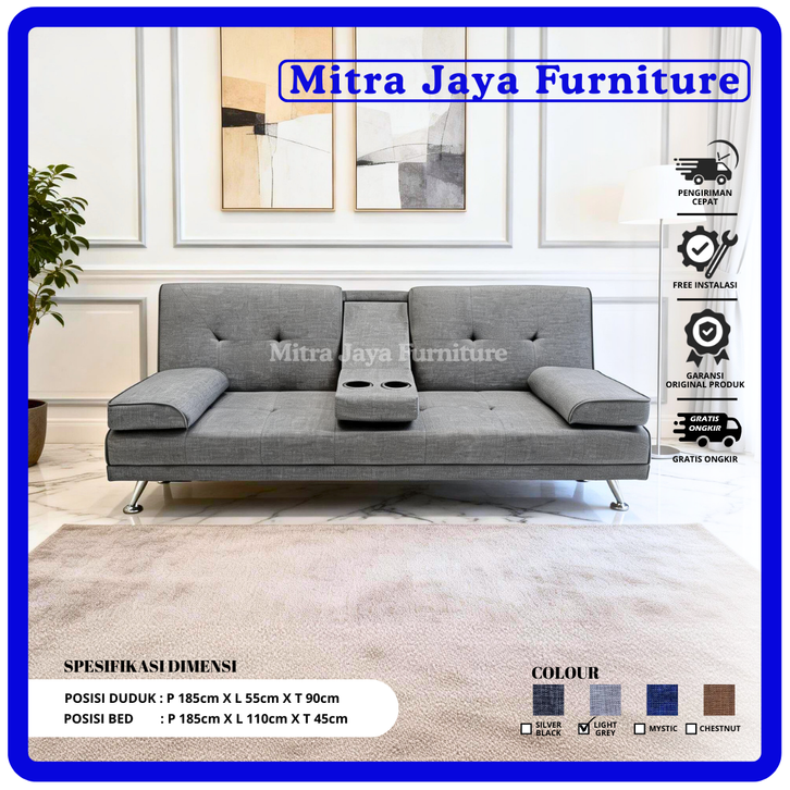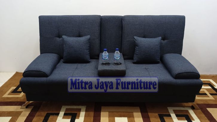 Sofa Bed Minimalis Modern Sofa Multifungsi Dilengkapi Tatakan Gelas/ Mitra Jaya Furniture
