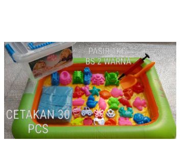 Mainan Edukasi Pasir Ajaib 1kg 30pcs Cetakan Bisa 2 Warna Pasir BerSNI