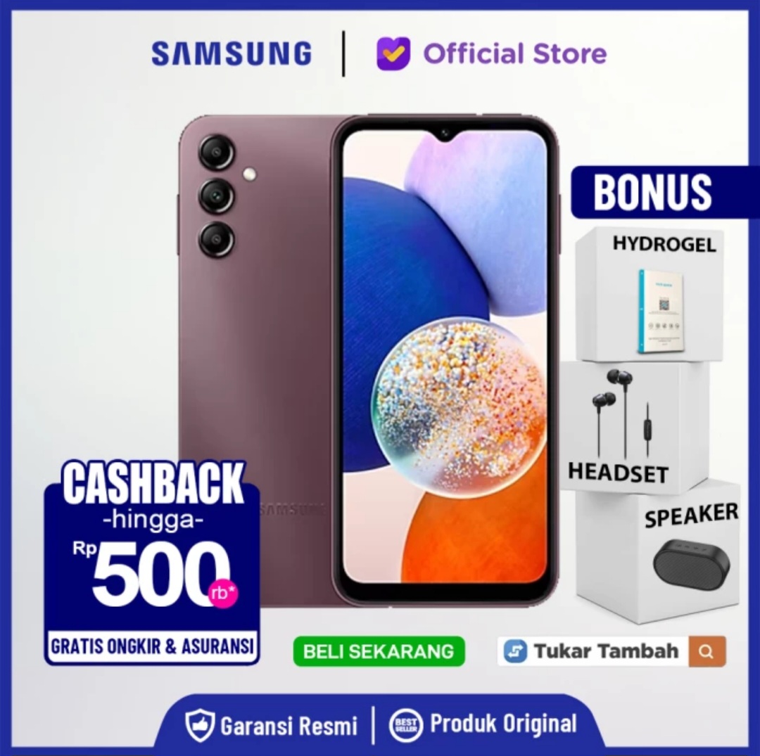 SAMSUNG A14 5G NFC RAM 6/128 GB SMARTPHONE NEW/BARU BNIB SEGEL GARANSI RESMI SEIN 1 TAHUN [GRATIS ONGKIR + BONUS]