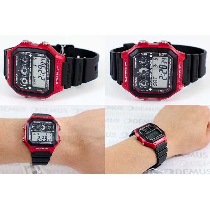 Casio Original AE-1300WH-4A / AE1300WH-4A Jam Tangan Pria - Digital - Karet - Merah