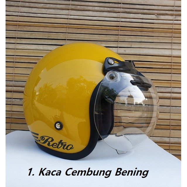 Helm Bogo Retro Dewasa Warna Kuning Glossy Untuk Pria - Wanita