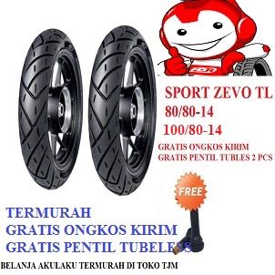 PAKET 2 BAN 80/80-14 DAN 100/80-14 TYPE SPORT ZEVO GRATIS ONGKOS KIRIM DAN GRATIS DOP TUBELESS 2 PCS