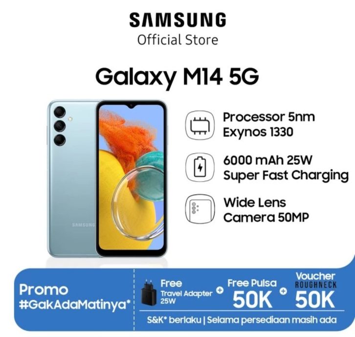 SAMSUNG M14 5G NFC RAM 6/128 GB SMARTPHONE NEW/BARU BNIB SEGEL GARANSI RESMI SEIN 1 TAHUN [GRATIS ONGKIR + BONUS]