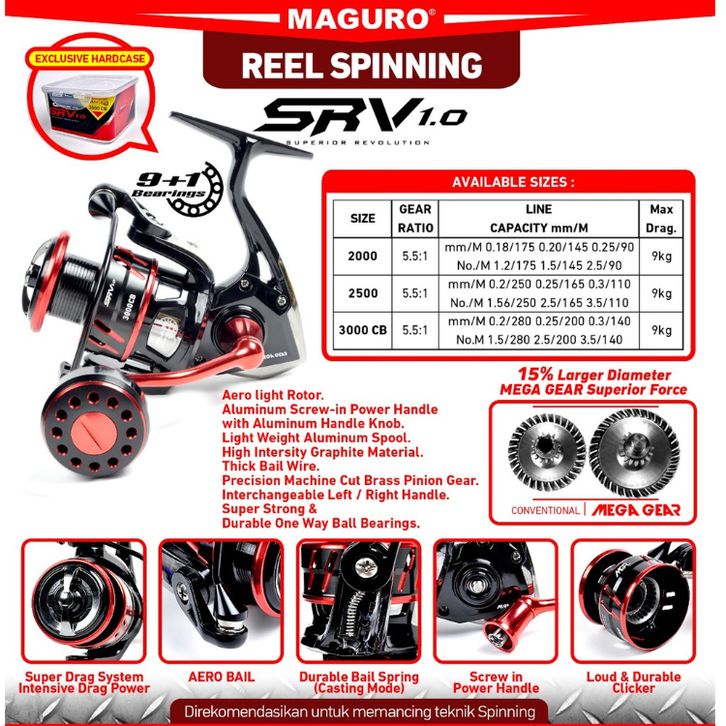 Reel Maguro SRV 1.0 | 9+1 Bearing | Mega Gear | Power Handle | Spinning | 2000 | 2500 | 3000CB