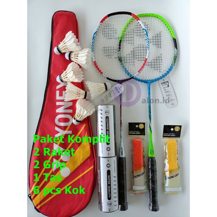 Raket Badminton Sepasang isi 2 pcs - Shuttlecock - Kok Bulutangkis Paket Komplit Murah