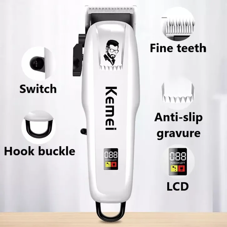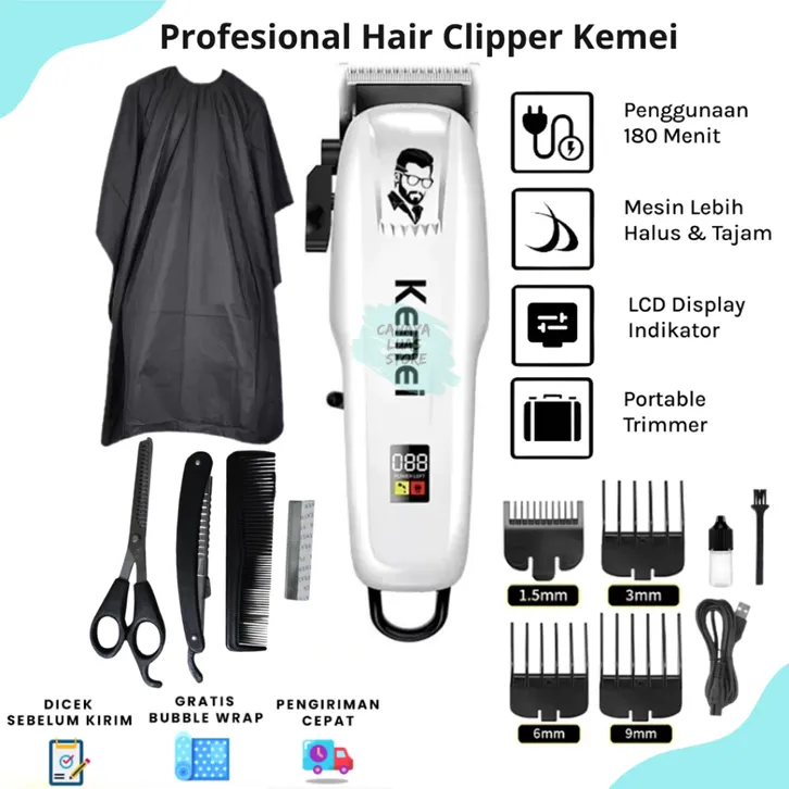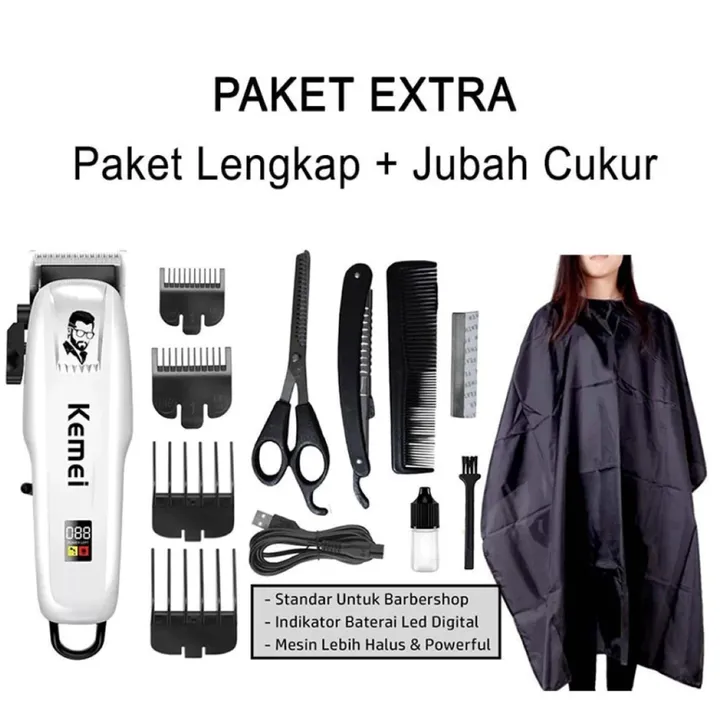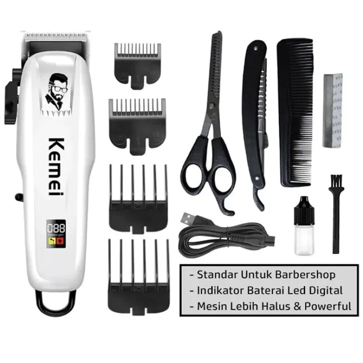 CL Mesin Cukur Rambut Cas Profesional Paket Barbershop KEMEI Indikator Baterai LED Digital ORIGINAL