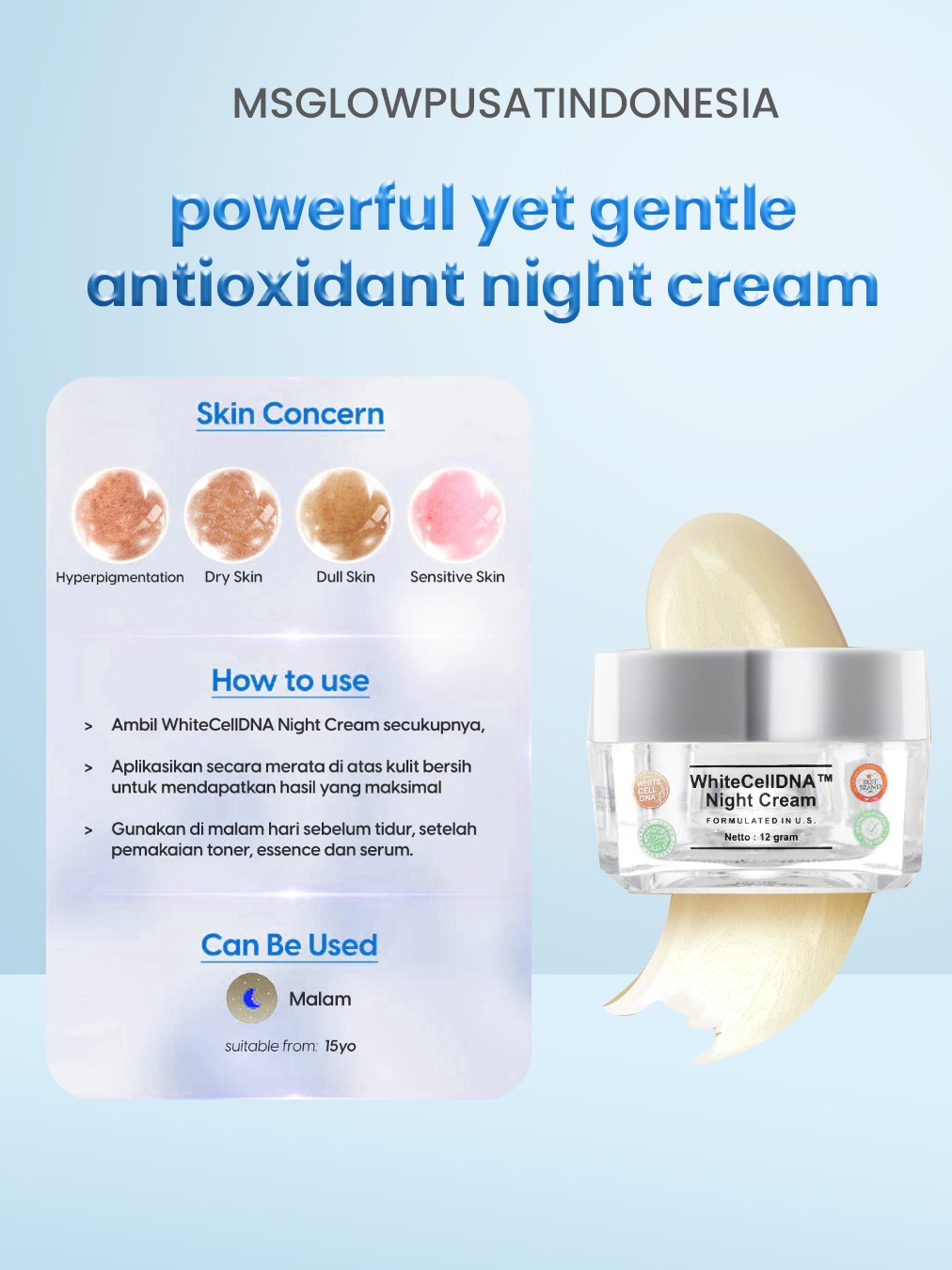 Ms Glow - White Cell Dna Night Cream - 12 Gr - Original 100% Bpom - Ms Glow Official Store