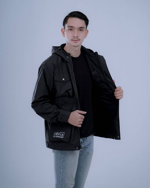 Jaket Parka Taslan ZN Black Wp Outdoor Pria & Wanita Original The Bojiel