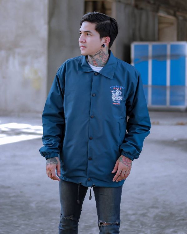 Jaket Coach Taslan ZN Blue Chinese Dragon Wp Outdoor Pria & Wanita Original The Bojiel