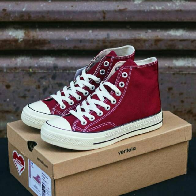 SEPATU Ventela BTS High Maroon QUALITY PREMIUM - FREE ONGKIR SE INDONESIA - FREE BOX - SEPATU TERMURAH