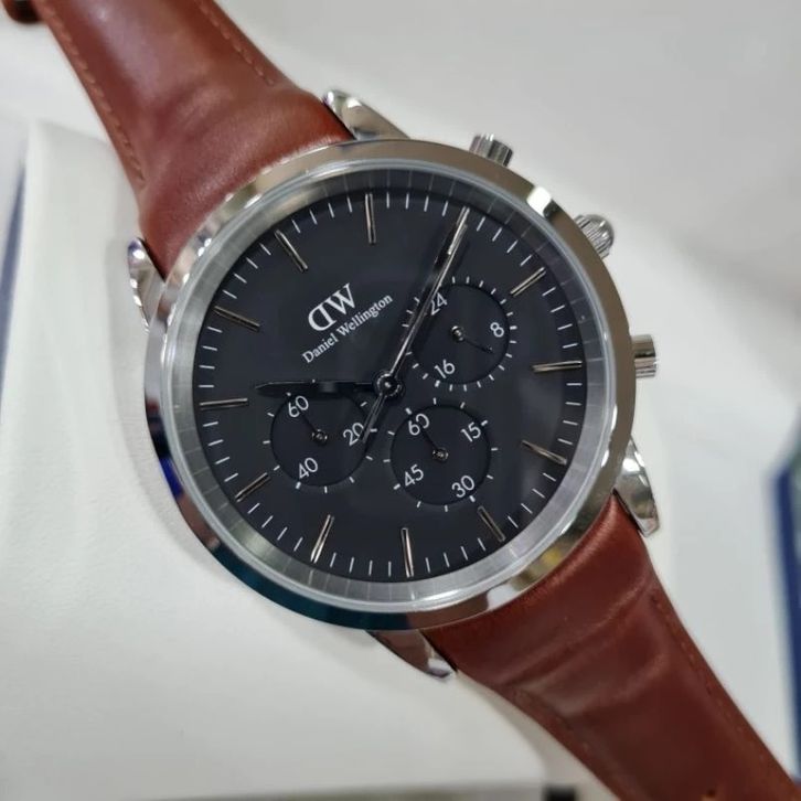 JAM TANGAN PRIA DANIEL WELLINGTON ICONIC LINK LEATHER SERIES ORIGINAL FREE BOX