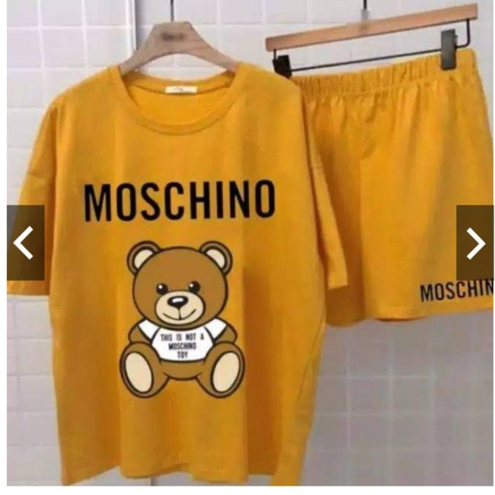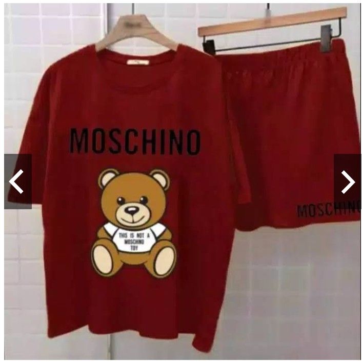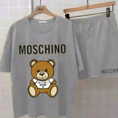 Satu Set Baju dan Celana Pendek Wanita Motif Moschino Mix Warna Bahan Babyterry Good Quality FREE ONGKIR JABODETABEK