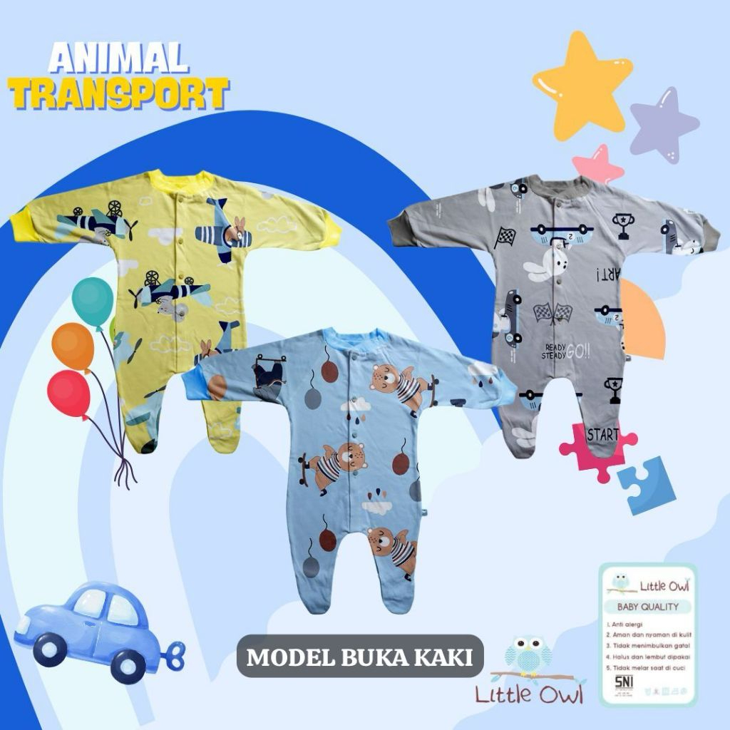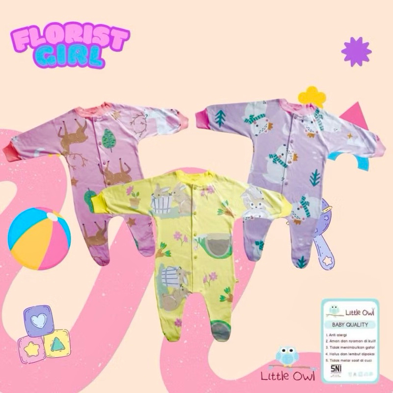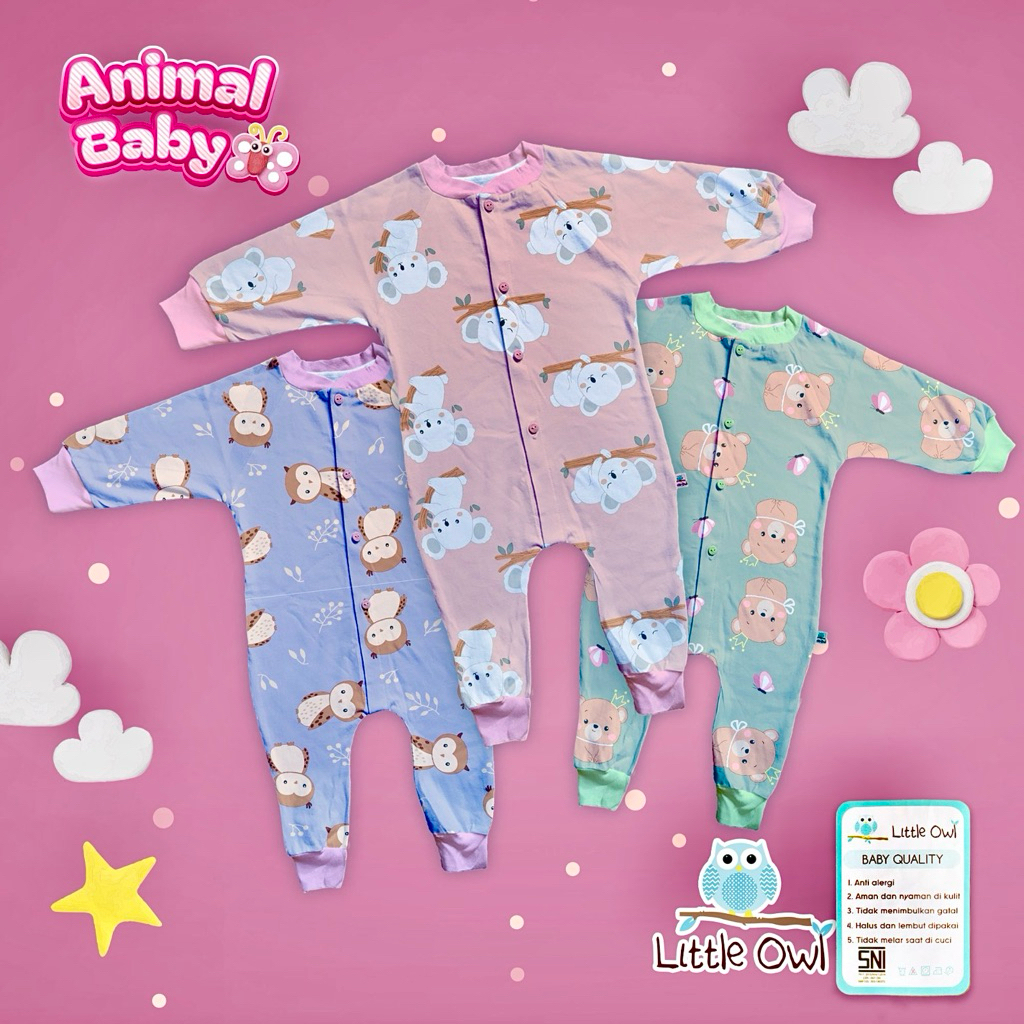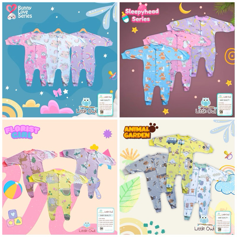 3 Pcs Sleepsuit Little Owl Baju Kodok Bayi 0-24 Bulan Motif Jumper panjang Newborn Piyama