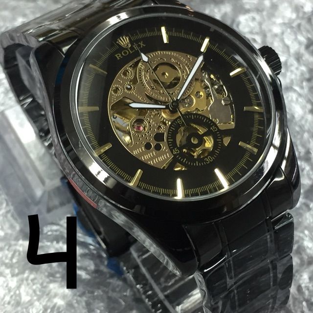 Jam Tangan Rolex Pria | Skeleton Chain | Rantai | Automatic | Otomatis | Romawi A Hitam | Fullblack