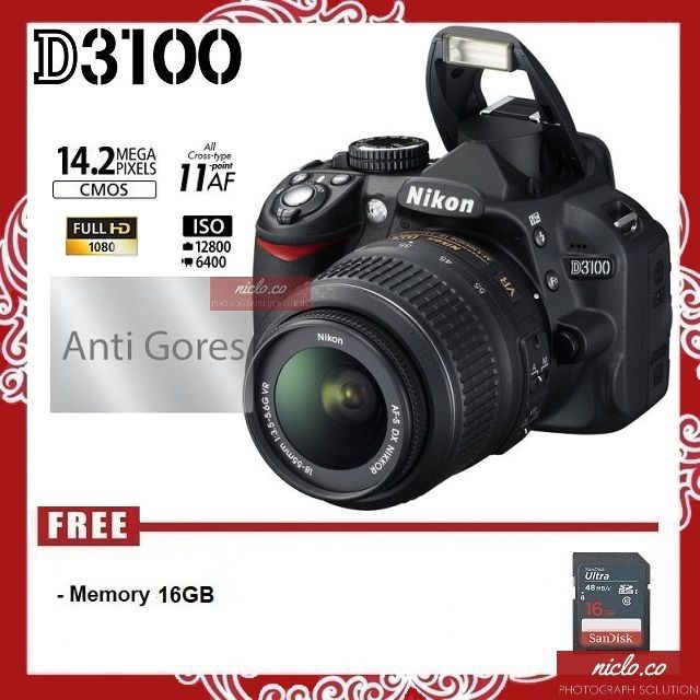 [NEW] KAMERA NIKON D3100 + LENSA KIT 18-55mm VR - GARANSI 1 TAHUN - FREE ACCESORIES CAMERA DSLR d3200 1100d 1200d d5100