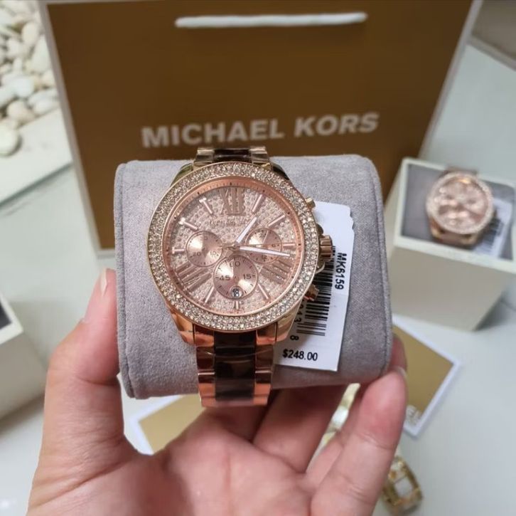 JAM TANGAN WANITA MICHAEL KORS MK6159 ROSEGOLD BROWN STAINLESS STEEL ORIGINAL- FREE ACCESORIES