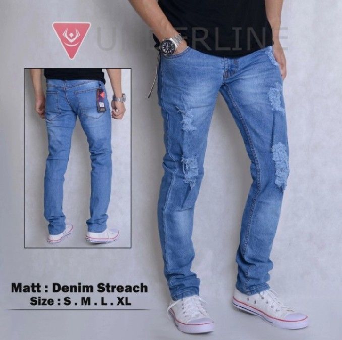 Celana Panjang Ripped Jeans Sobek Panjang Biowash Original Underline Pria Casual Streetwear Outdoor