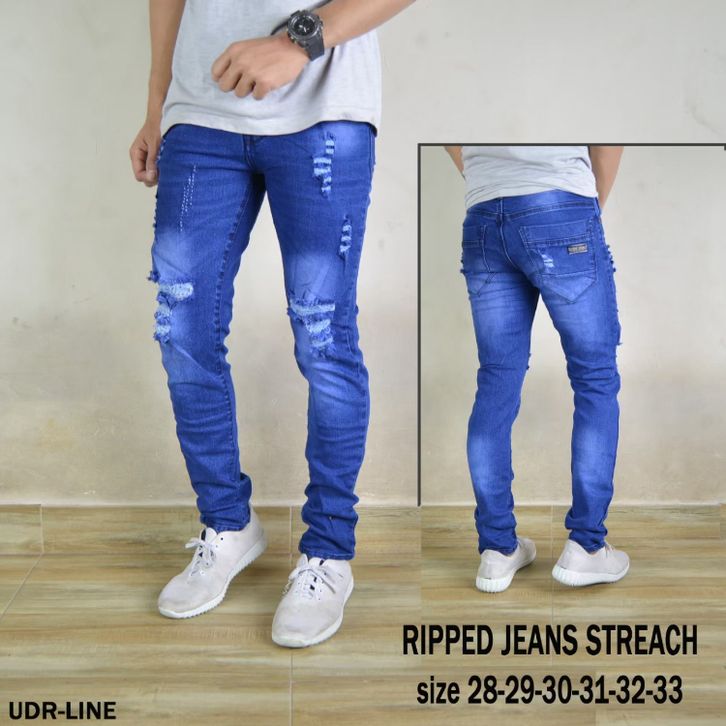 Celana Ripped Jeans Jeans Sobek Panjang Bluewash Original Kunaker Jeans Pria Casual Streetwear Outdoor