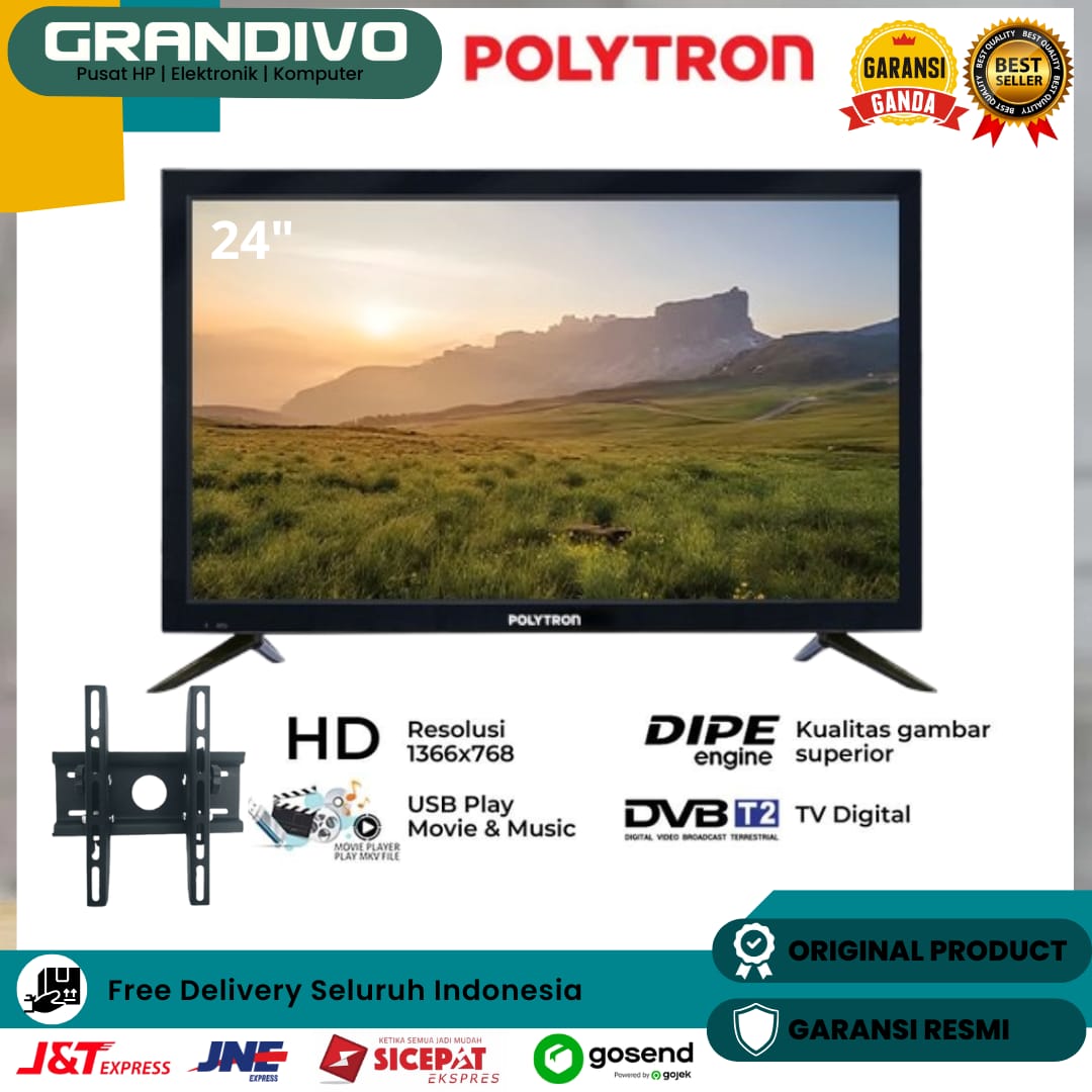 Free Ongkir TV LED POLYTRON DIGITAL 24 INCH V1853 Garansi Resmi - Grandivo