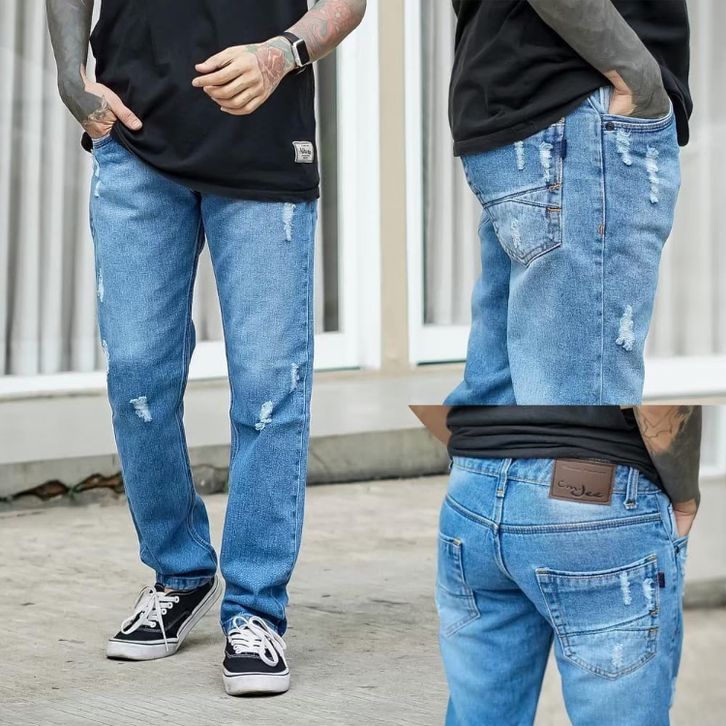 Promo Celana Panjang Pria Jeans Motif Sobek Dengan Bahan Denim Premium