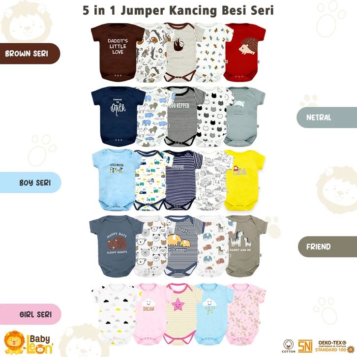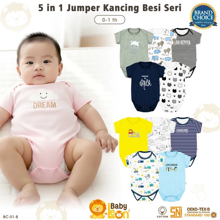 BABY LEON 5in1 Baju Jumper Bayi COTTON SNI baju Jumpsuit Anak Bayi Baju Tidur kaos Bayi BC-01-8 / BC-01-4 / BC-FL50