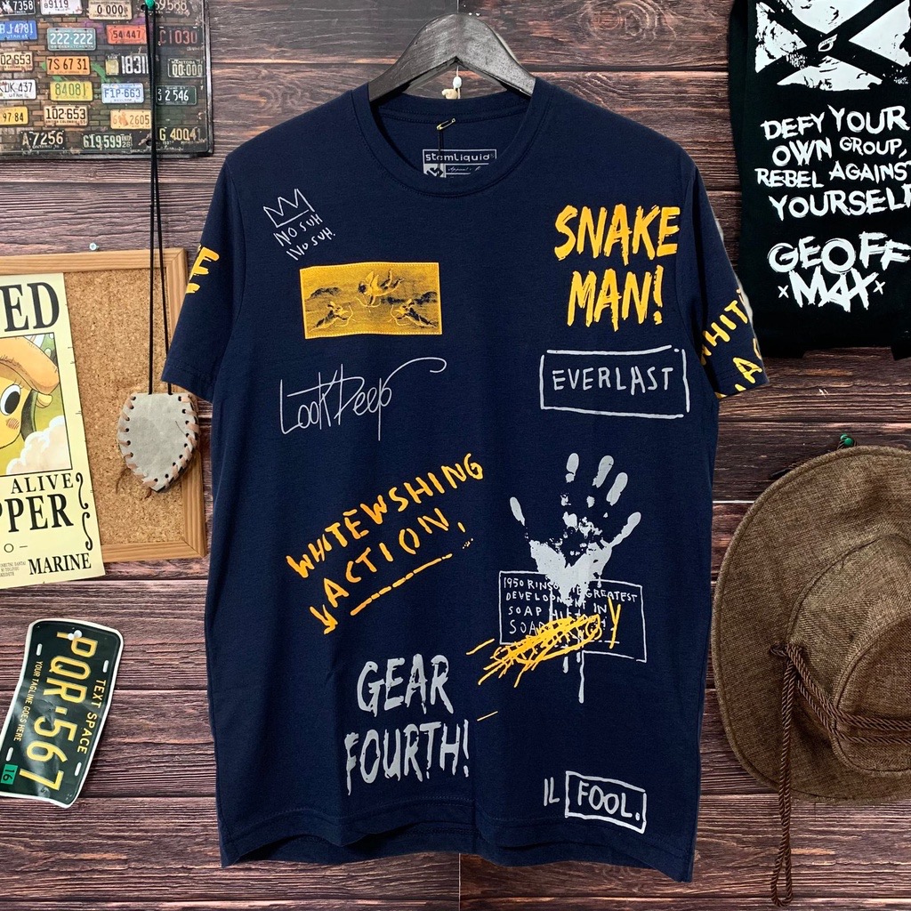 kaos distro pria NAVY SNAKEMAN allsize ld98cm cotton full printing baju kaos cowok atasan pria