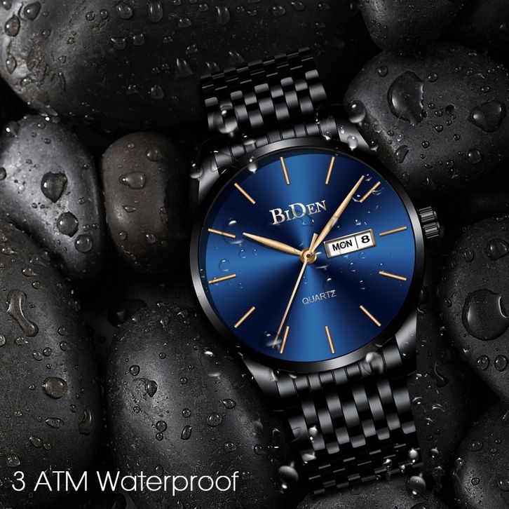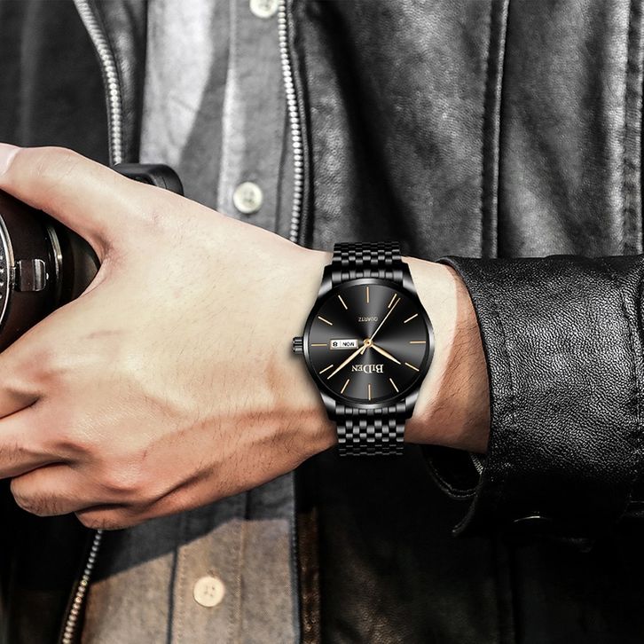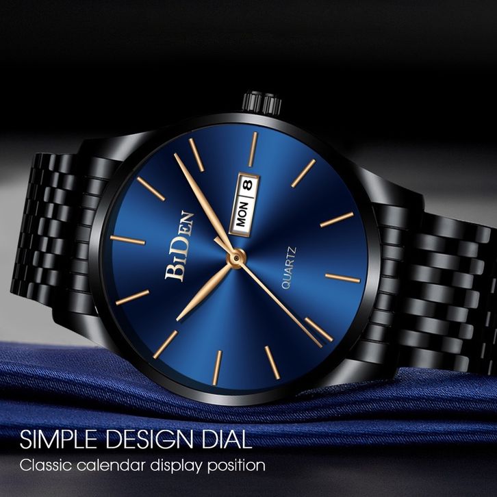 BIDEN Jam Tangan Pria Original Bisnis Mode Display Kuarsa Tali Stainless Steel Anti Air Jam Tangan Cowok