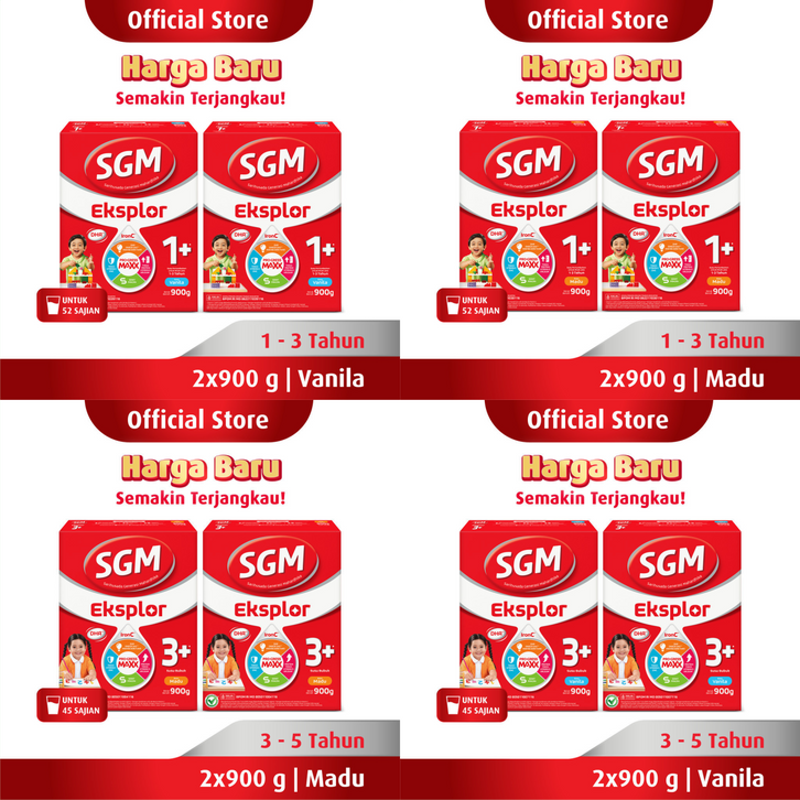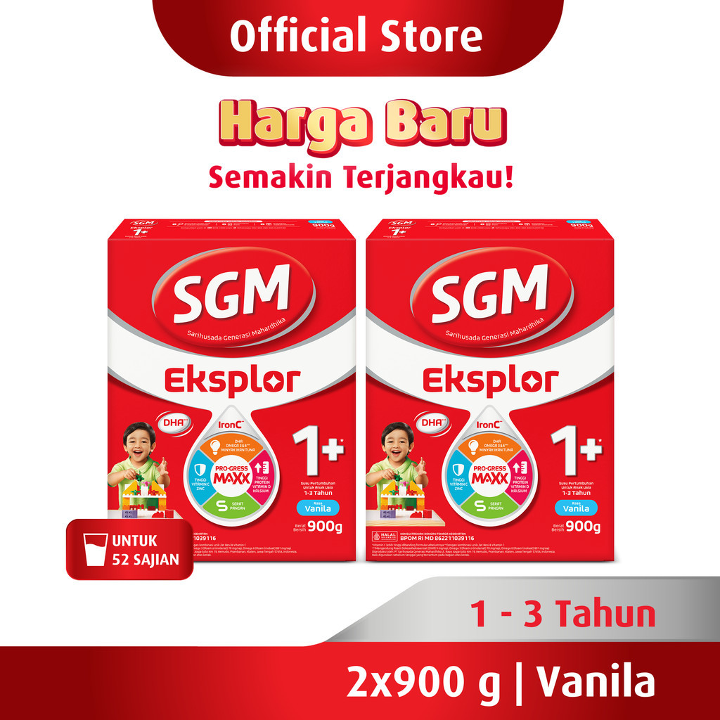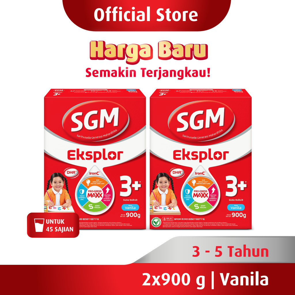 (2 BOX) SGM Eksplor Aktif 1+/ 3+ Pro-GressMaxx Vanilla Susu Pertumbuhan 900gr X 2
