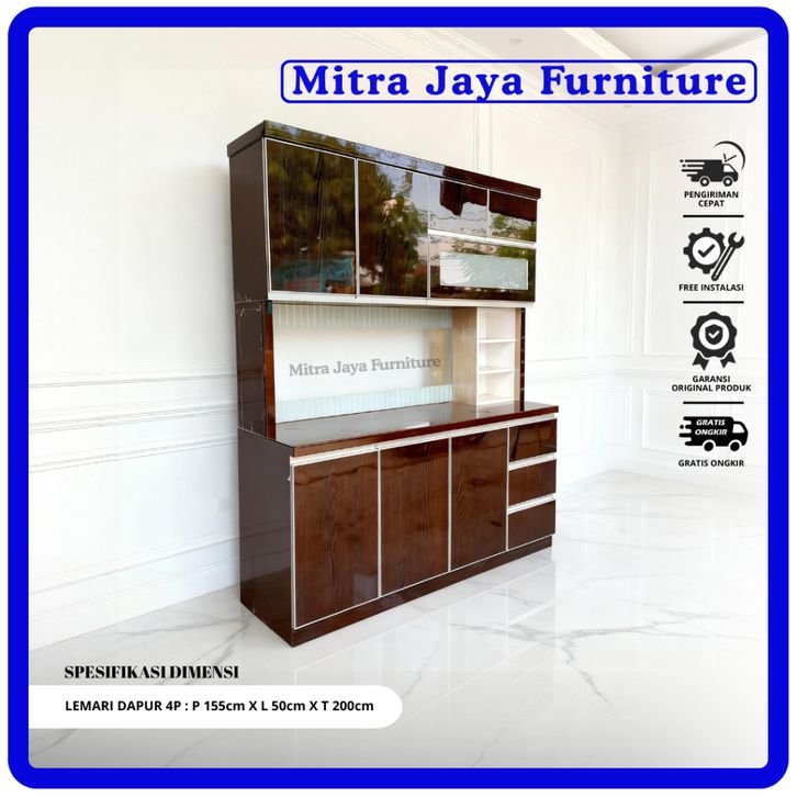 Lemari Dapur 4 pintu Hpl Rak Piring Bahan Premium Dengan Kitchen Set/ Mitra jaya Furniture