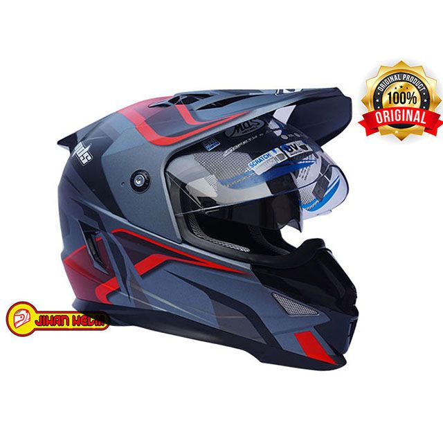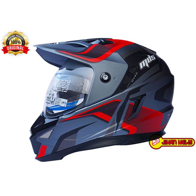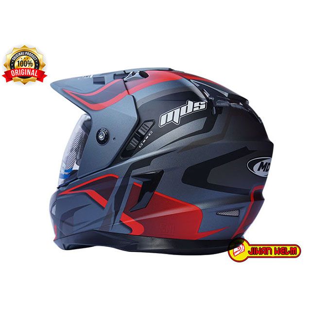 HELM MDS SUPERMOTO / HELM FULL FACE MDS SUPER PRO #2 ALLUMINIUM GREY MATT RED TERMURAH