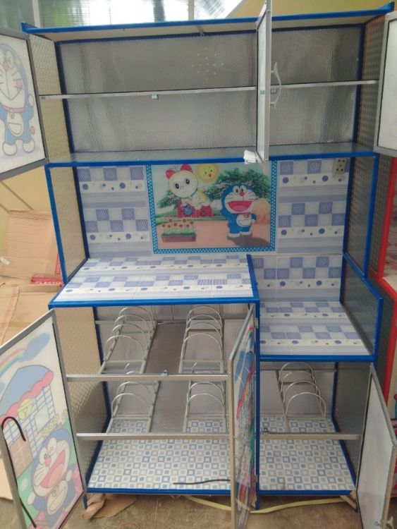 Rak Piring Kaca Lukis 3 Pintu Bawah Keramik Khusus Bogor dan DEPOK