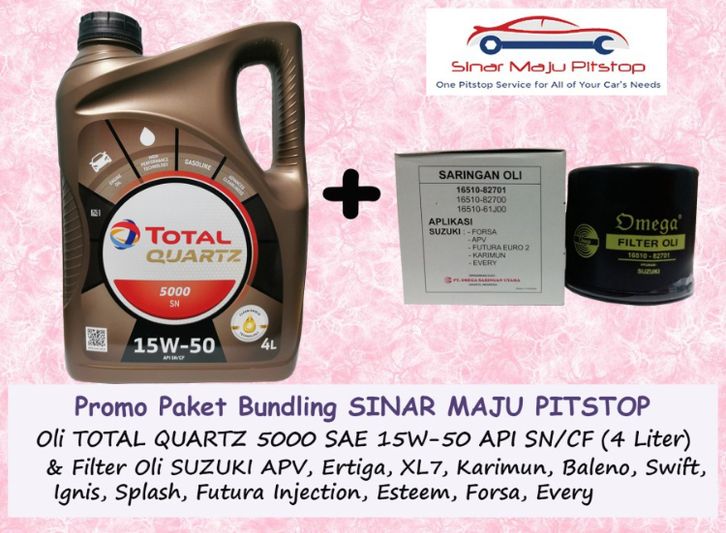 Paket Oli TOTAL QUARTZ 5000 SAE 15W-50 API SN/CF 4 Ltr & Filter SUZUKI APV & SUZUKI ERTIGA & SUZUKI XL7 & SUZUKI KARIMUN